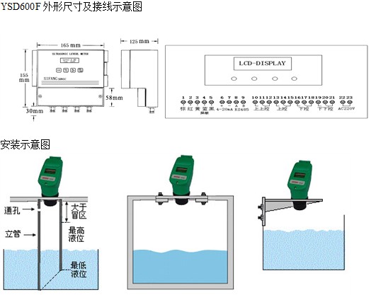 YSD600系列超聲波液位計產(chǎn)品可廣泛用于各種液體的液位和固體的物位測量,同時也可用于測距使用。是一種智能非接觸式液(物)位測量儀表。產(chǎn)品具有發(fā)射功率可調(diào)整,全量程內(nèi)增益控制,自動溫度補償?shù)裙?/span>能,并采用先進的檢測和計算方法,提高了產(chǎn)品的測量精度及數(shù)據(jù)穩(wěn)定性,能識別虛假信號,從而有效去除各種干擾信號。