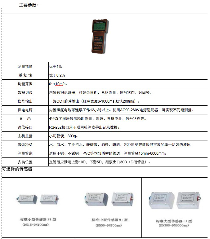 手持式超聲波流量計(jì),具有測(cè)量精度高、數(shù)據(jù)自動(dòng)存儲(chǔ)、全中文顯示、操作靈活等特點(diǎn)。